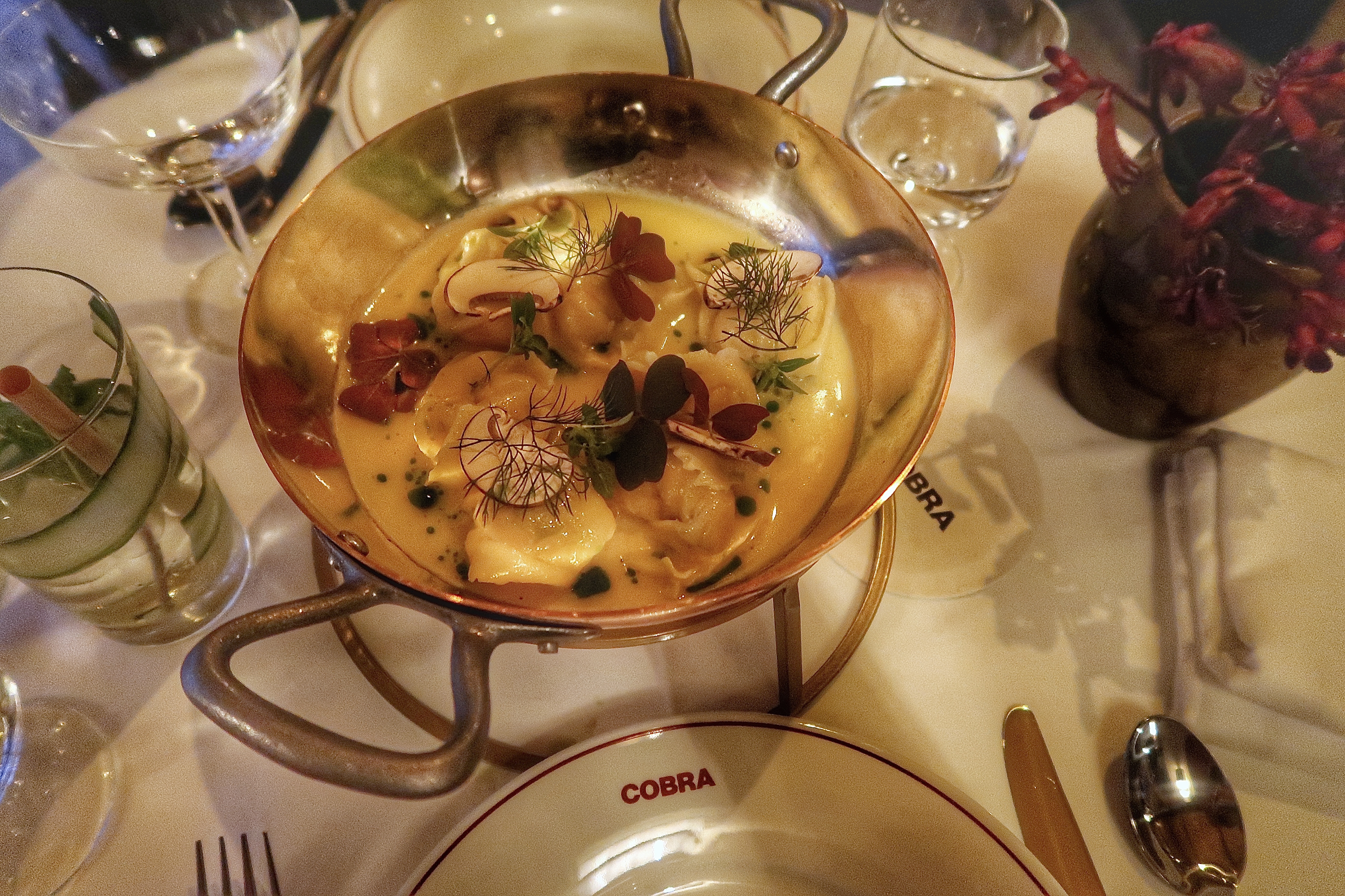 Uit de open keuken klinken het geritsel van groenten, het sissen van bakkend vlees en het subtiele geroezemoes van de koks. De kaart verrast met meer vegetarische opties dan het bekende Cobra City aan de Leopoldstraat, een fijne touch voor wie geen vlees eet. Ook de prijzen trekken de aandacht: een pasta king crab voor 120 euro doet me twee keer kijken. Omdat we honger hebben gekregen van de geuren uit de keuken, bestellen we meteen drie sharinghapjes.